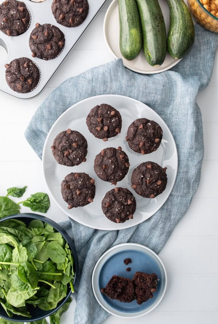 If you’re dealing with a picky eater in your house, these chocolate veggie muffins are for you! You wouldn’t even know these hidden veggie muffins have spinach, zucchini and beans in them. Ready in under 35 minutes, hidden veggie chocolate muffins are great for the school lunch box, an after school snack or on the go!